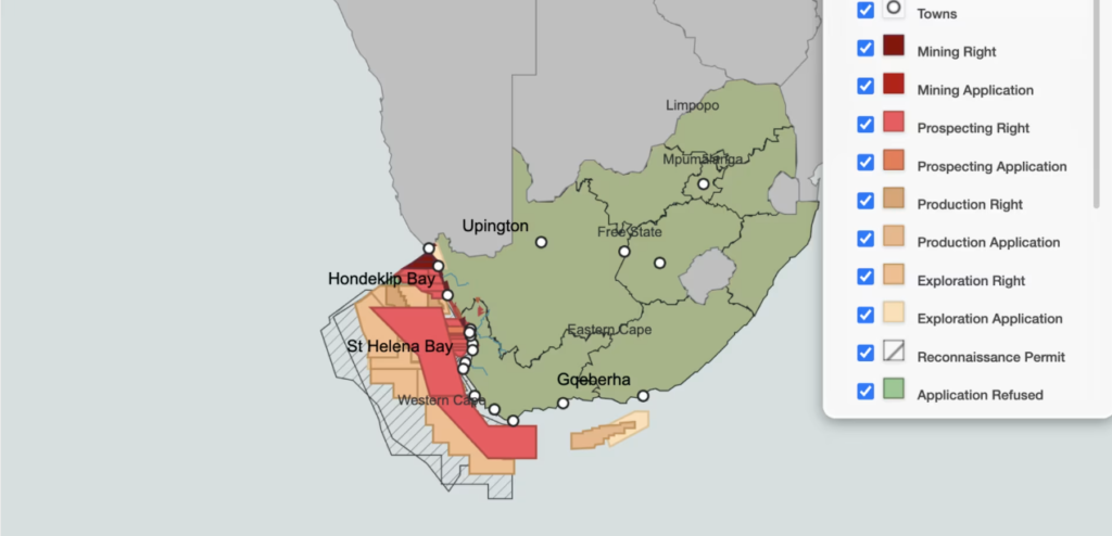 The extent of the mining both prospective and current across the west coast of South Africa. Photo: PTWC.