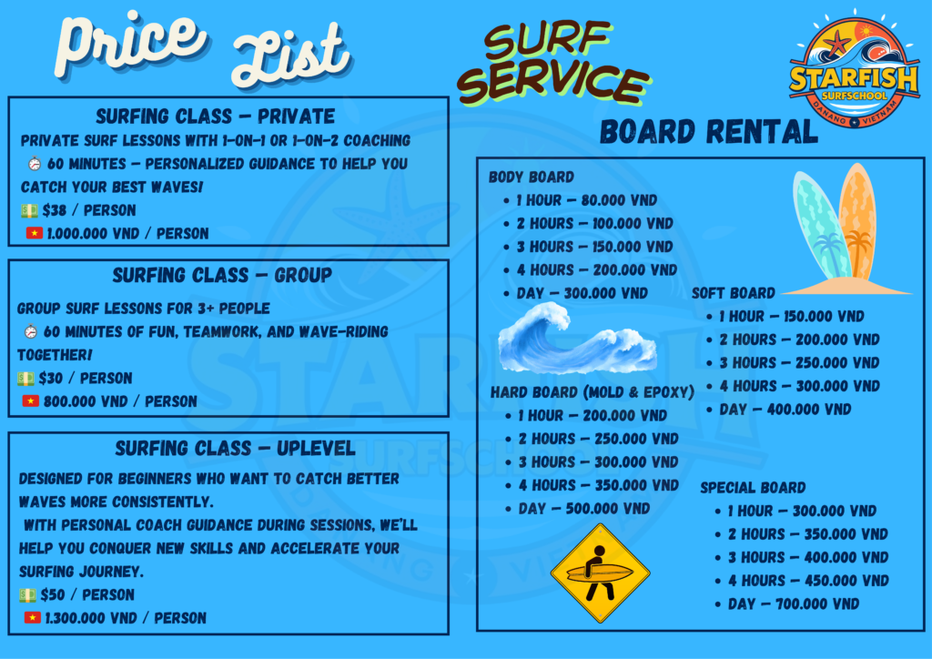 If you are searching for the best surf school in Da Nang, with experienced coaches and premium surfboard rentals, Star Fish Surf School stands above the rest.